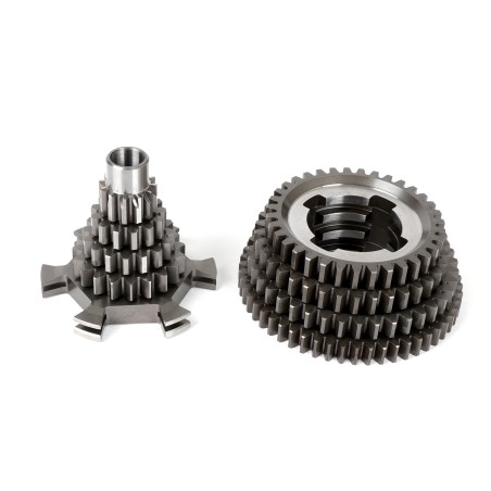 Junto con un diseño inteligente de los piñones, Stefano Benelli garantiza una durabilidad extrema de sus cajas de cambios. Al hacerlo reduce el número de casi todos los dientes y consigue así dos cosas: