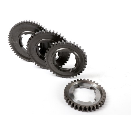 A diferencia de la habitual cuarta marcha corta de 36 dientes (original en PX 125 y T5), el piñón de la tercera y cuarta velocidad de Benelli tiene tres dientes menos lo que la hace estar diseñada para ser mucho más estable, perfecto para motores como Quattrini 244 y similar.