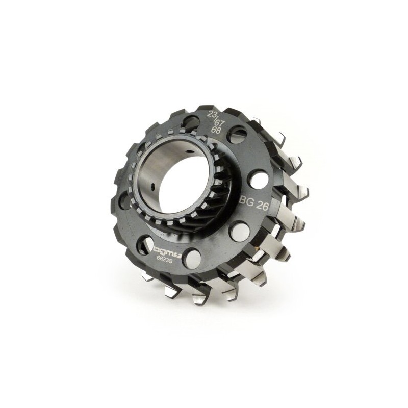 Los piñones de embrague BGM PRO están fabricadas a prueba de balas. Desarrollados para la enorme potencia y par de los motores actuales, están hechos de un acero de alta aleación (SCM415 / 15CrMo5) con los más altos estándares de fabricación. La enorme resistencia del material base (hasta 1100N/mm2, HRC 58-62) ofrece una base segura para la producción de piñones BGM.